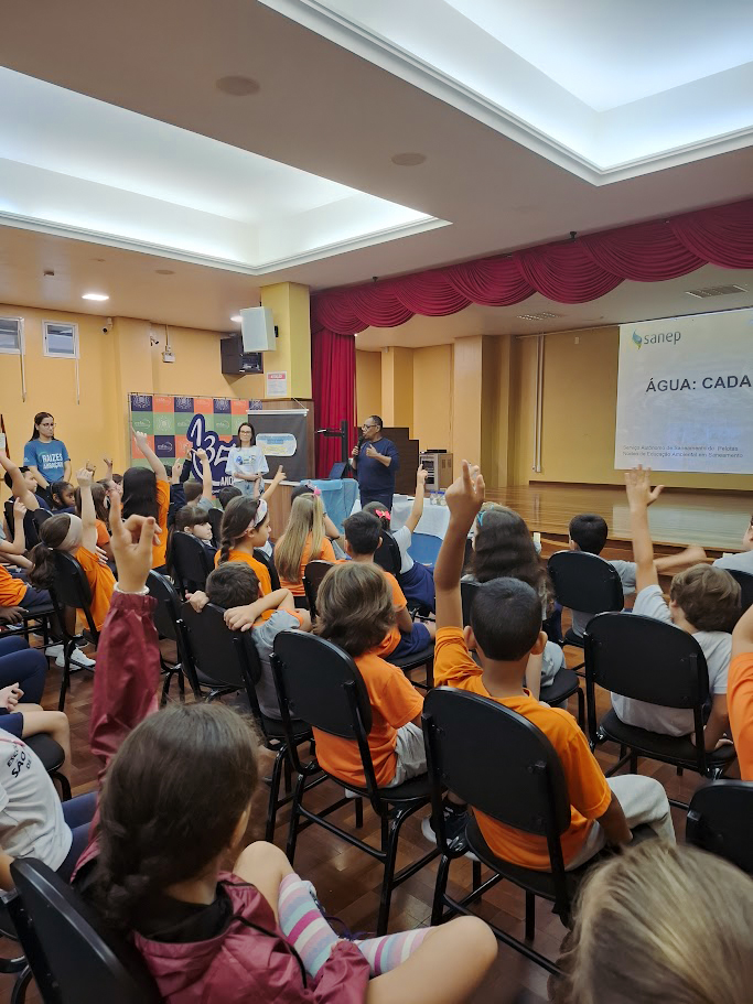Além disso, foram abordados aspectos relacionados ao funcionamento das estações de tratamento de água em Pelotas, permitindo que os alunos compreendessem o caminho percorrido pela água, desde a captação até a distribuição.